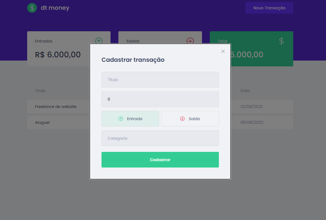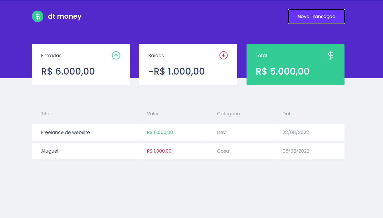 O DT Money é um projeto desenvolvido no programa Ignite da Rocketseat.